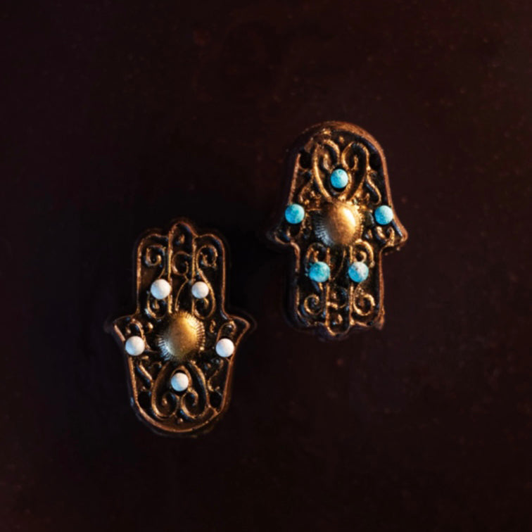 A piece of rich, velvety chocolate, its glossy surface shimmering with 24 karat gold dust. As you take a bite, you’re met with a luscious filling of sweet, caramel-like dates