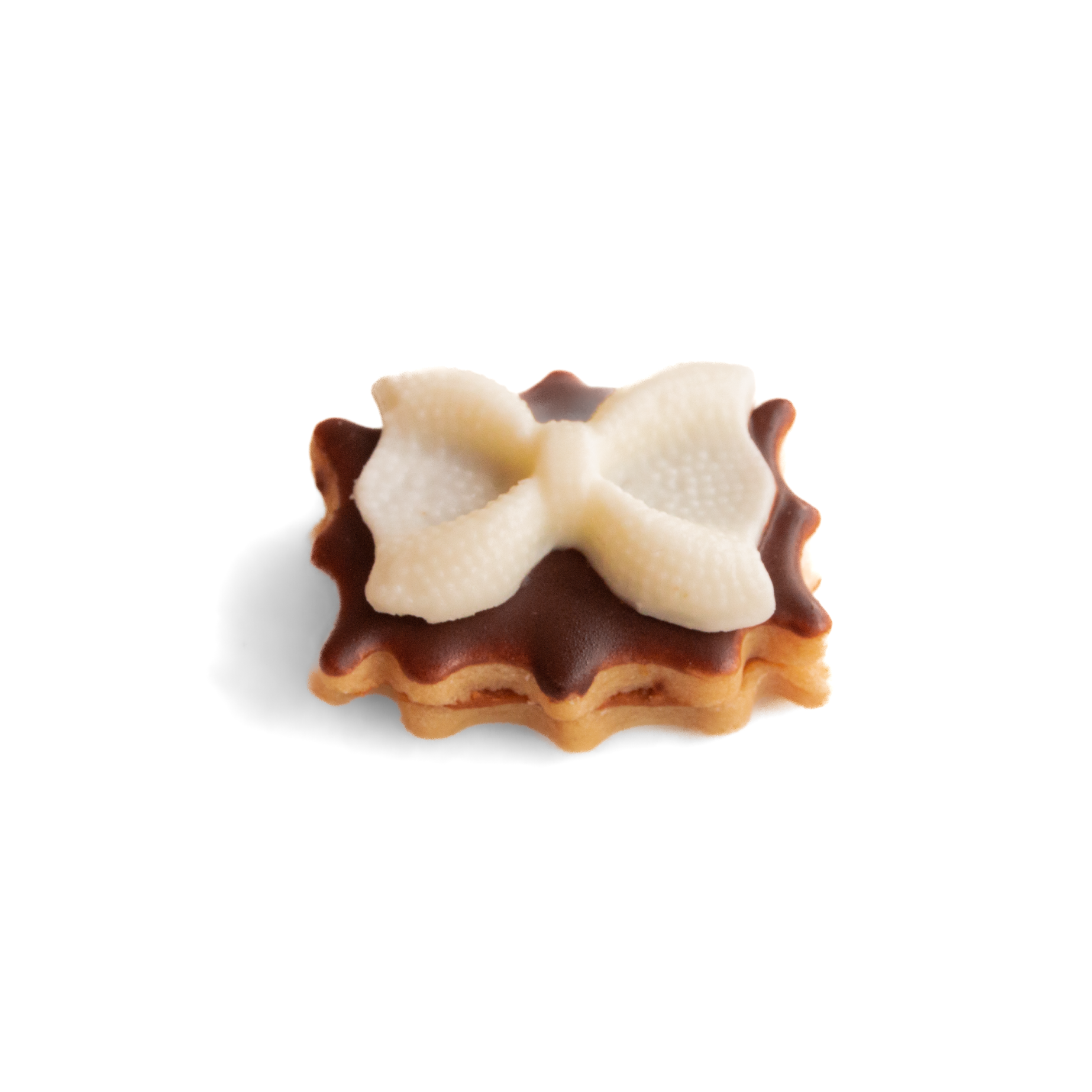 Indulge in the decadent allure of our Lotus Biscoff paste, encased in a smooth layer of dark chocolate and adorned with a delicate white chocolate bow. Each bite offers a buttery cloud that melts into the caramelized spread, crafting a heavenly blend of flavors and textures that take your taste buds on a journey of pure indulgence.