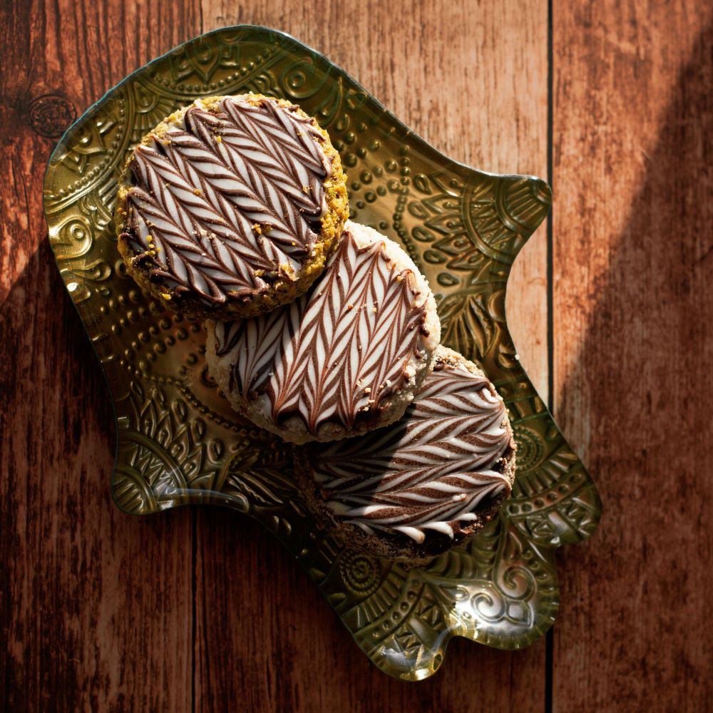 Imagine sinking your teeth into a luxurious creation of chocolate cookies, each layer rich and decadent, and coated with freshly roasted almonds. As you bite into the cookie, you’re met with a symphony of flavors and textures – the crisp yet tender layers of chocolate cookies giving way to the nutty crunch of the almonds. Adorned with intricate designs and decorative touches, they are a masterpiece of edible art, offering a truly indulgent experience with every bite.