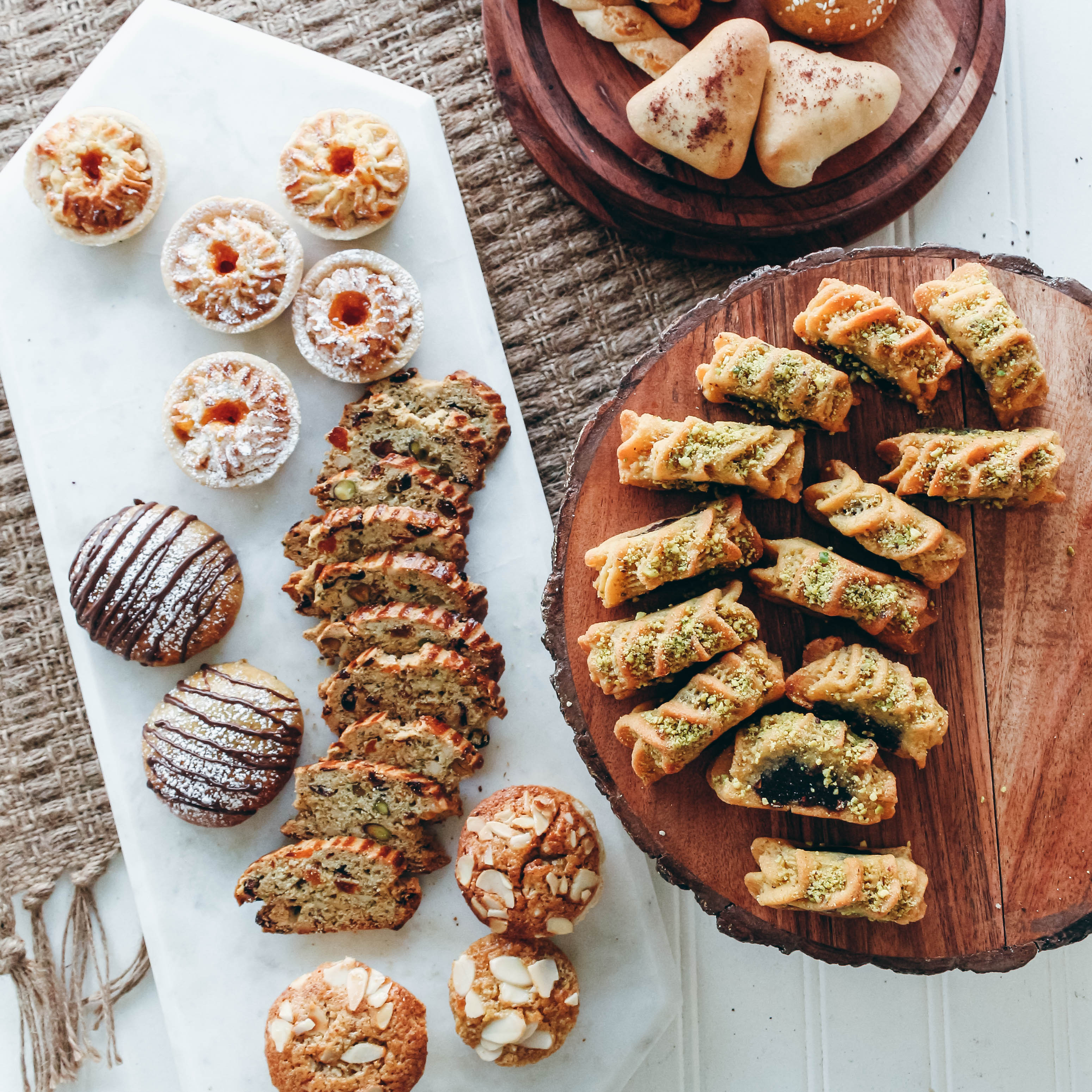Indulge in the luxurious delight of honey-kissed, crumbly semolina dough, lovingly filled with sweet dates and a whisper of orange blossom water. Freshly crushed pistachios and a dash of cinnamon blend together, evoking a delightful chai flavor that enchants the senses with every bite.
