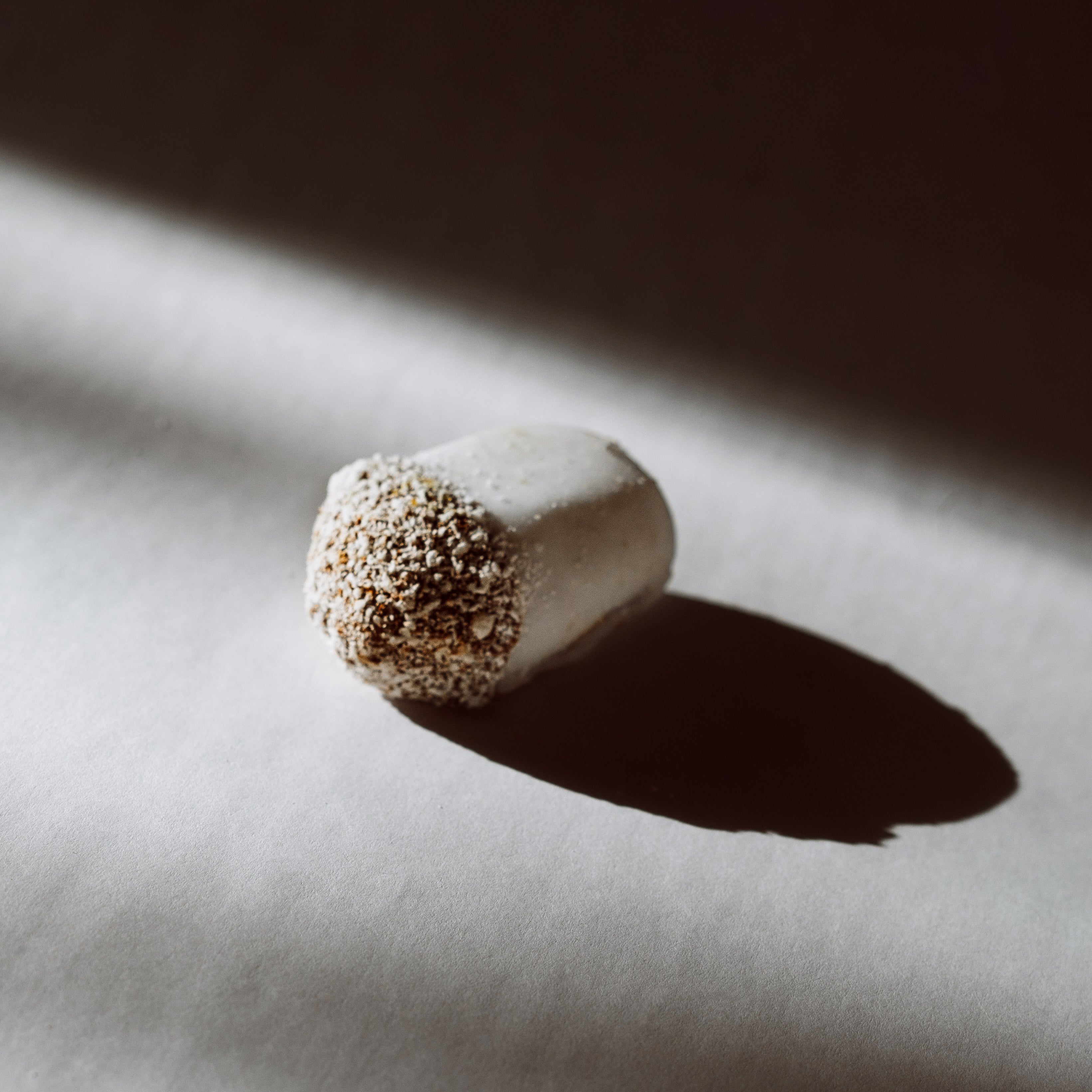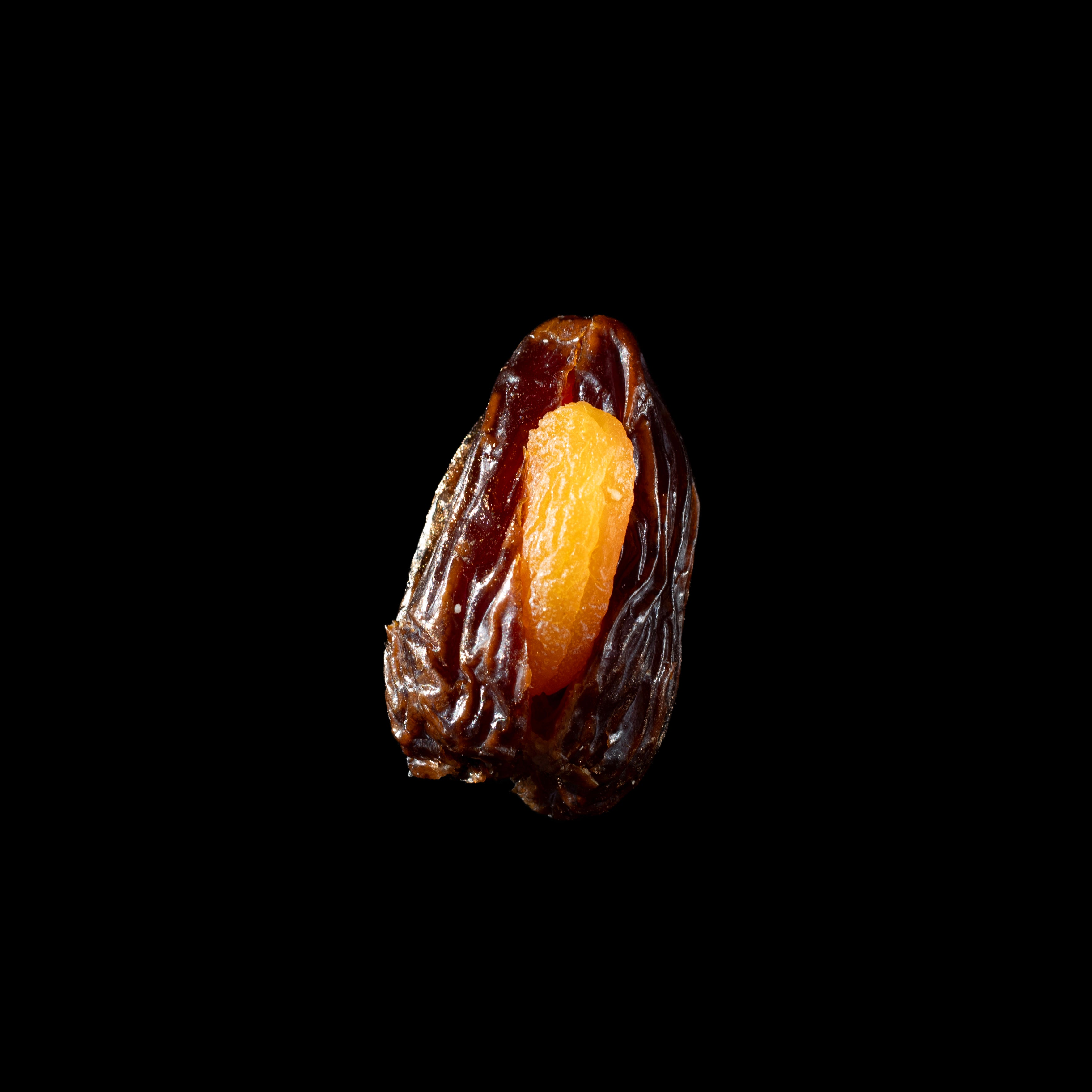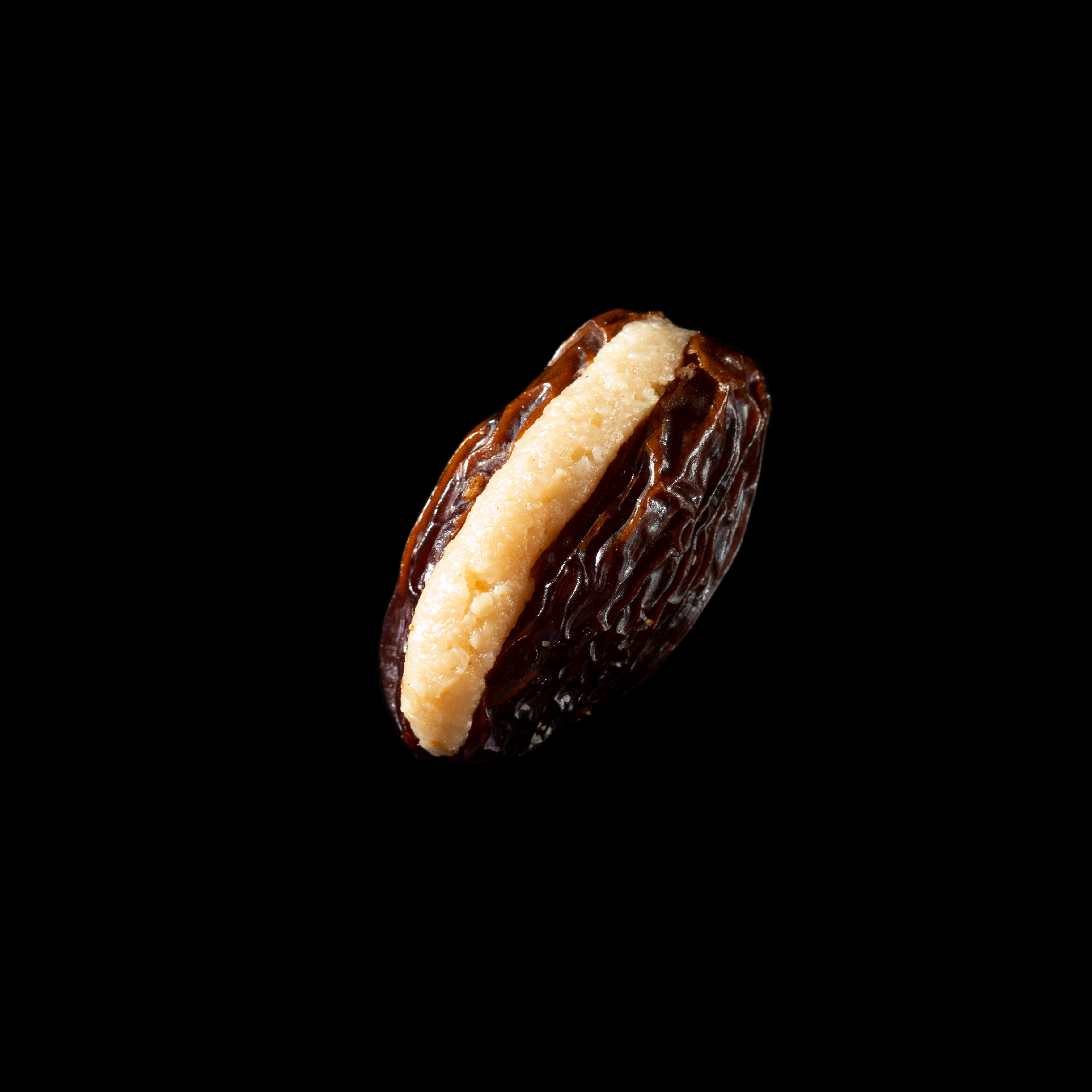 A tender date cradles raw almond, softened with condensed milk and lifted by the almond’s distinct aroma — a delicate dance of flavor and texture.