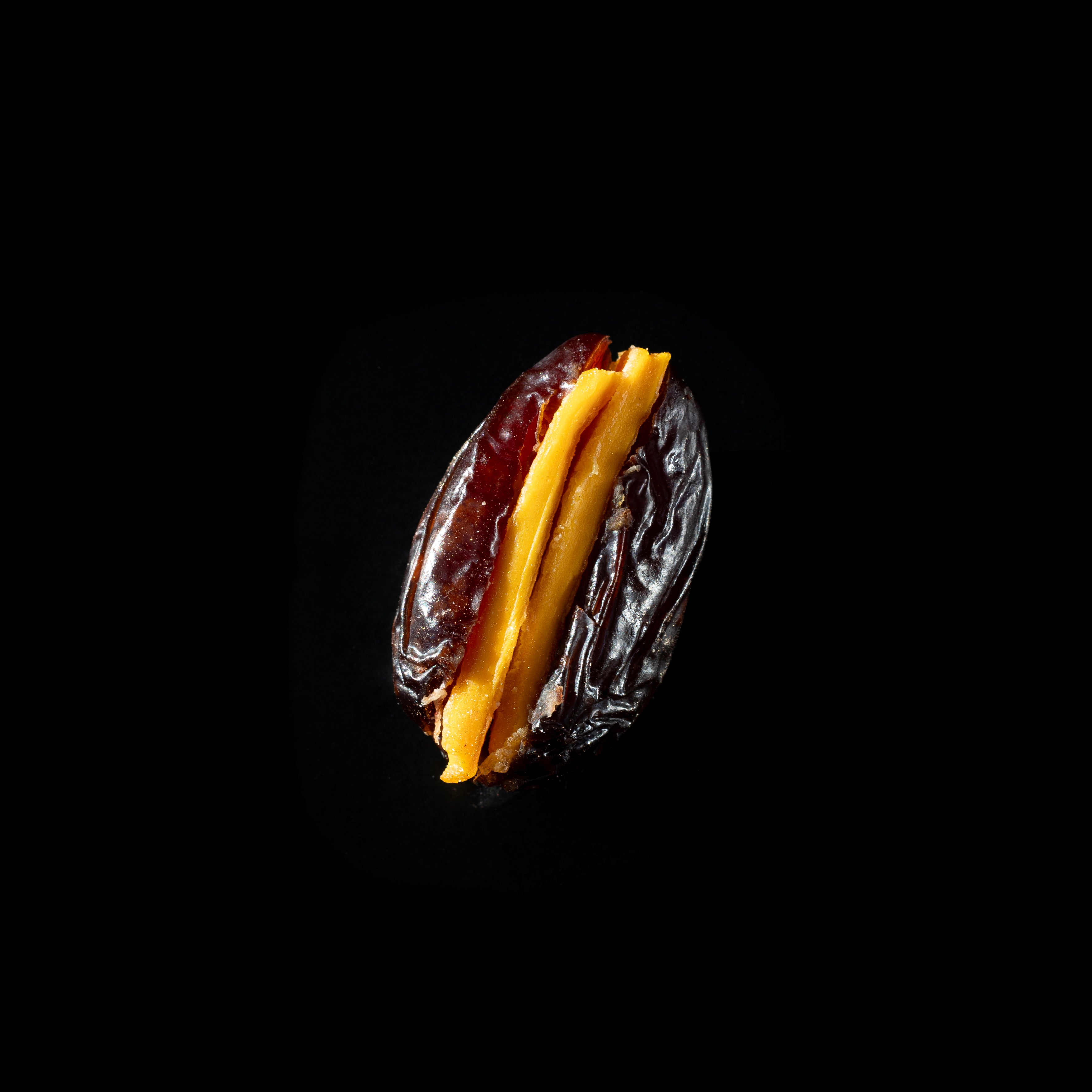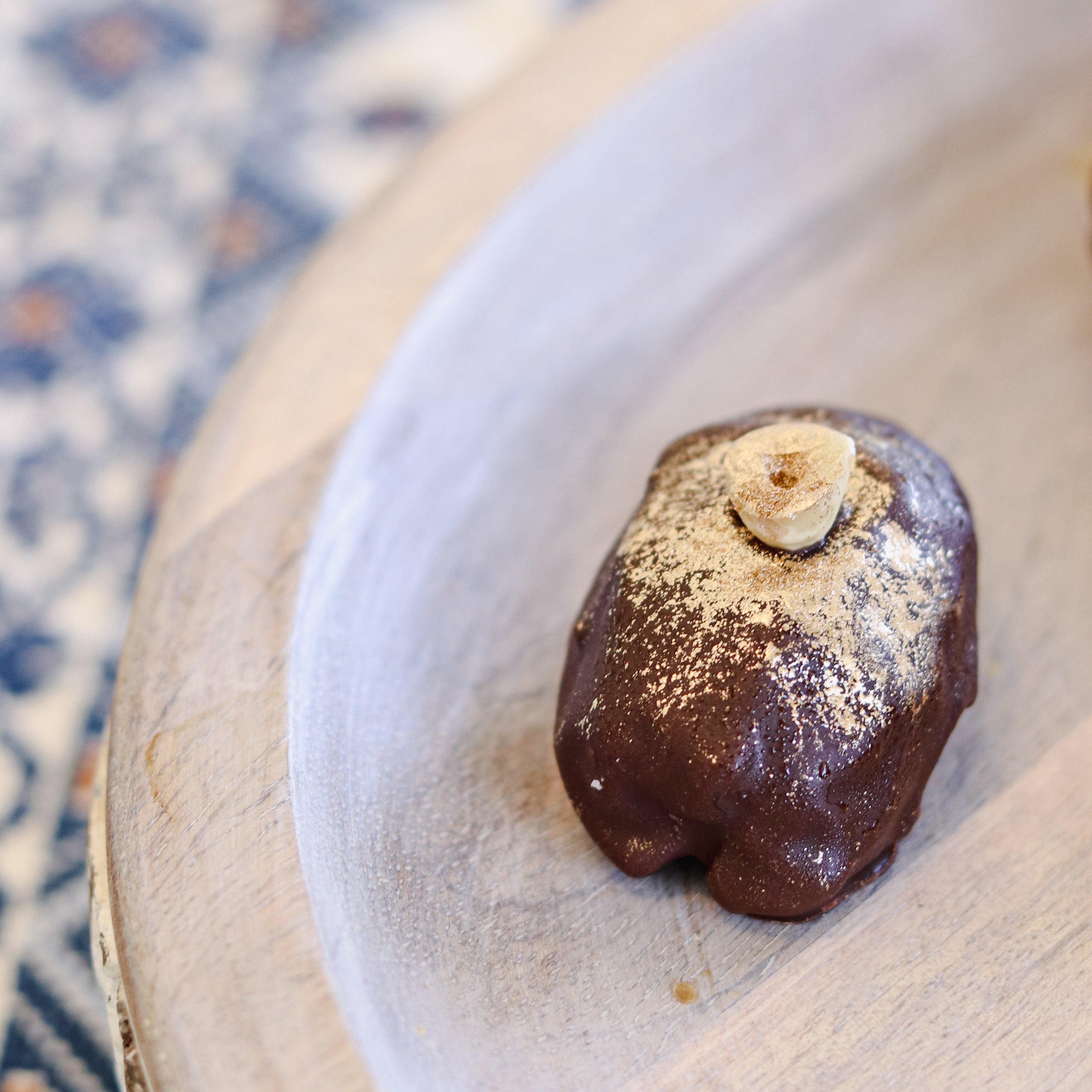 A piece of rich, velvety chocolate, its glossy surface shimmering with 24 karat gold dust. As you take a bite, you’re met with a luscious filling of sweet, caramel-like dates