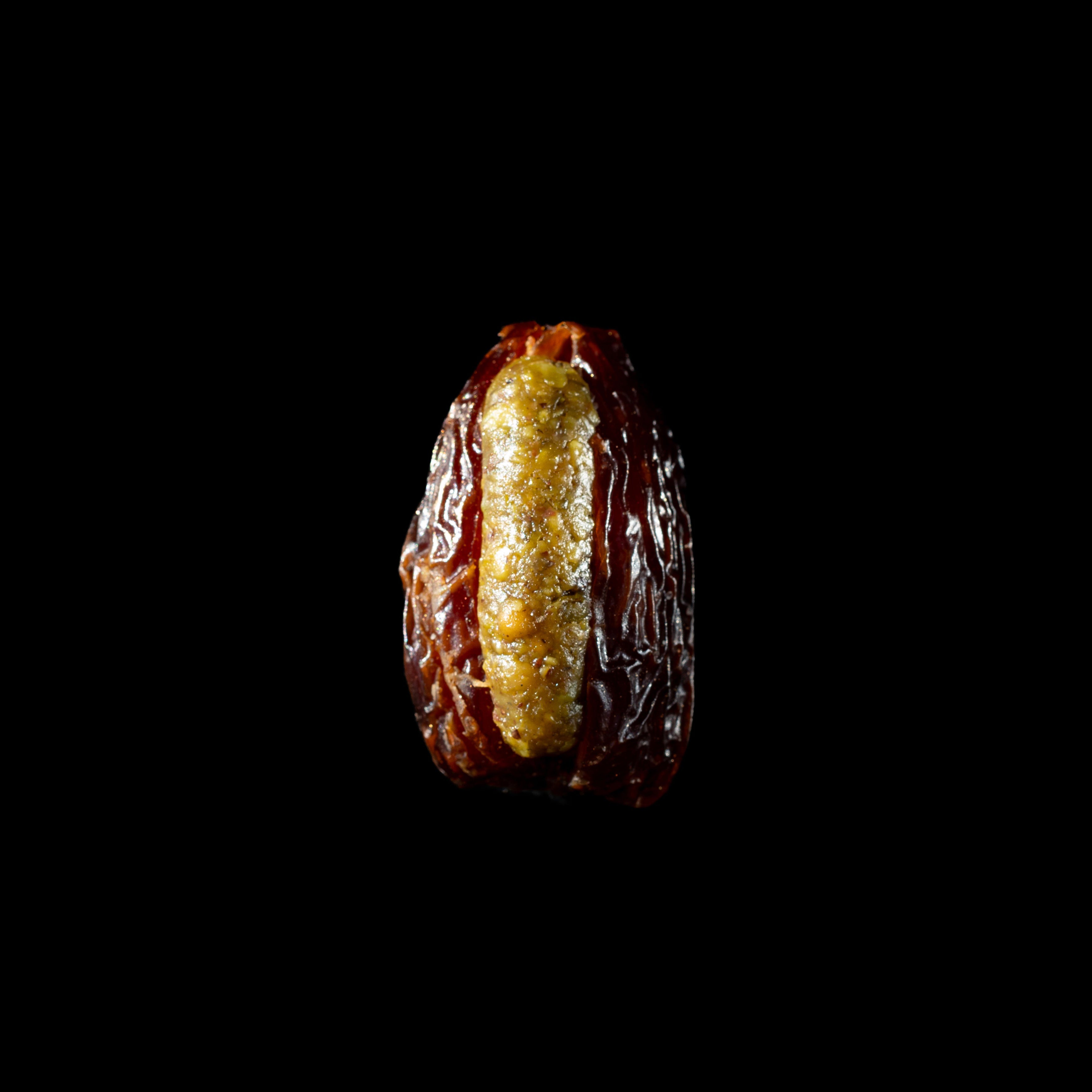 Filled with premium pistachio paste and a hint of orange blossom water, these Medjool dates deliver a rich, nutty crunch in every bite.