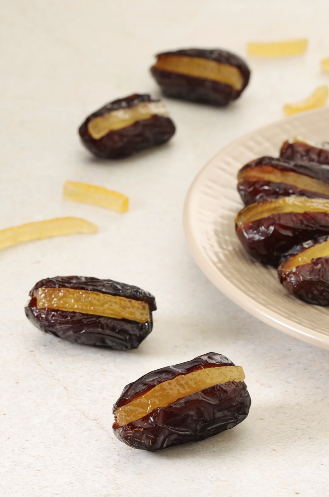 The citrusy flavor of the orange adds a refreshing and tangy twist to the natural sweetness of the dates. The combination of the soft and chewy dates with the bright and zesty orange filling creates a delicious and balanced flavor profile