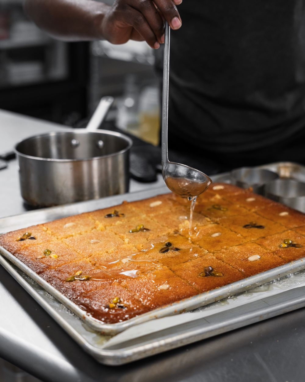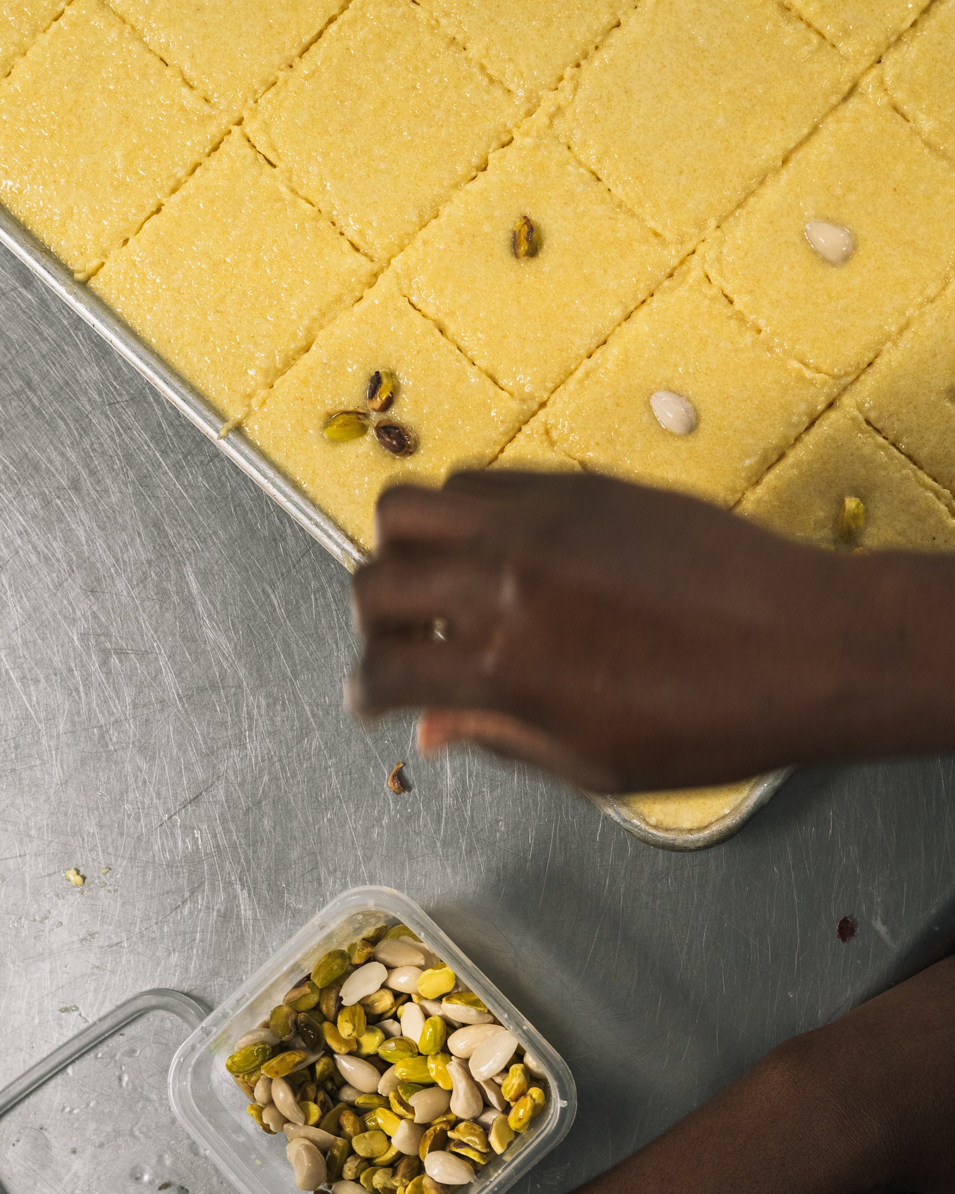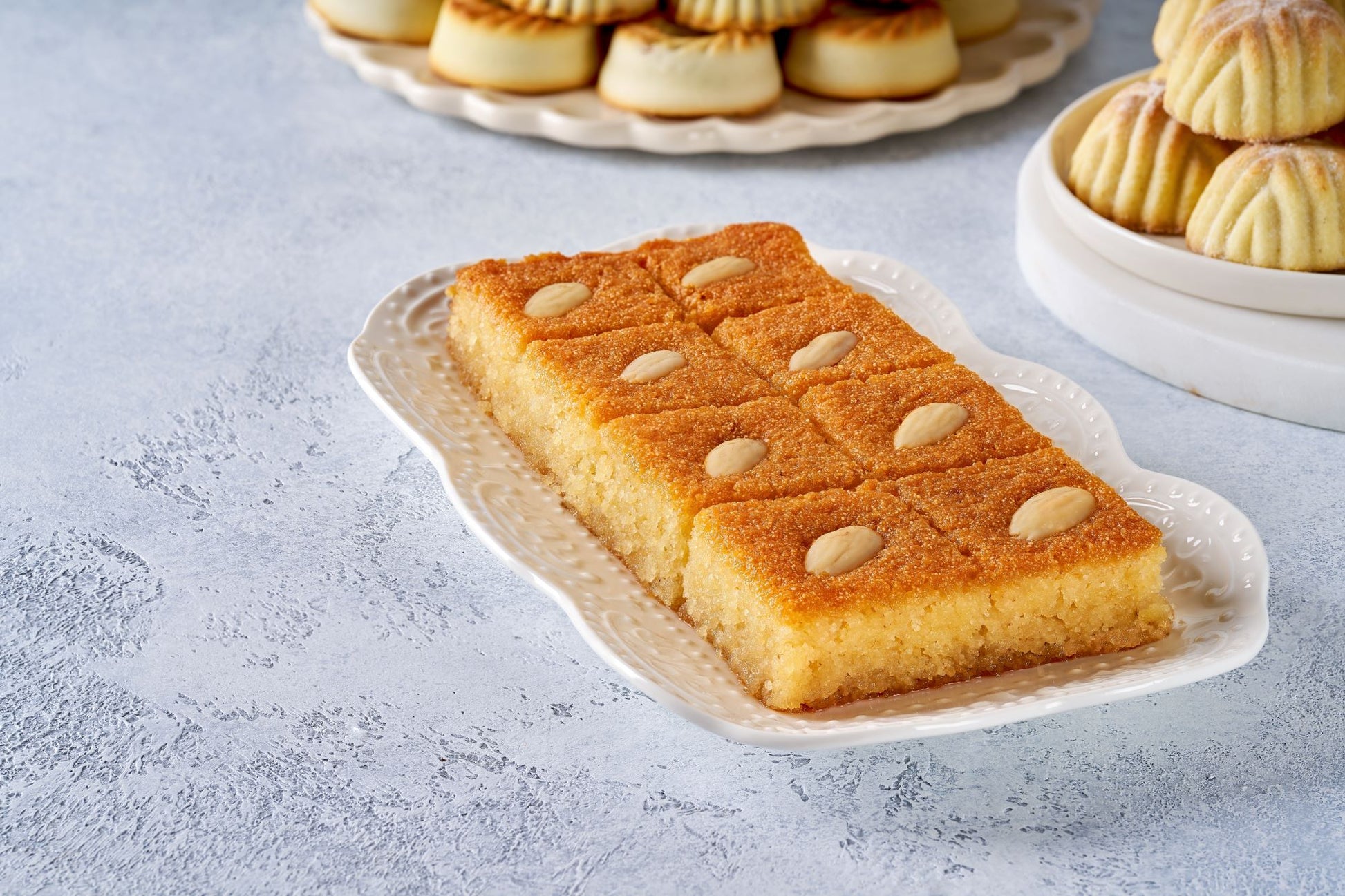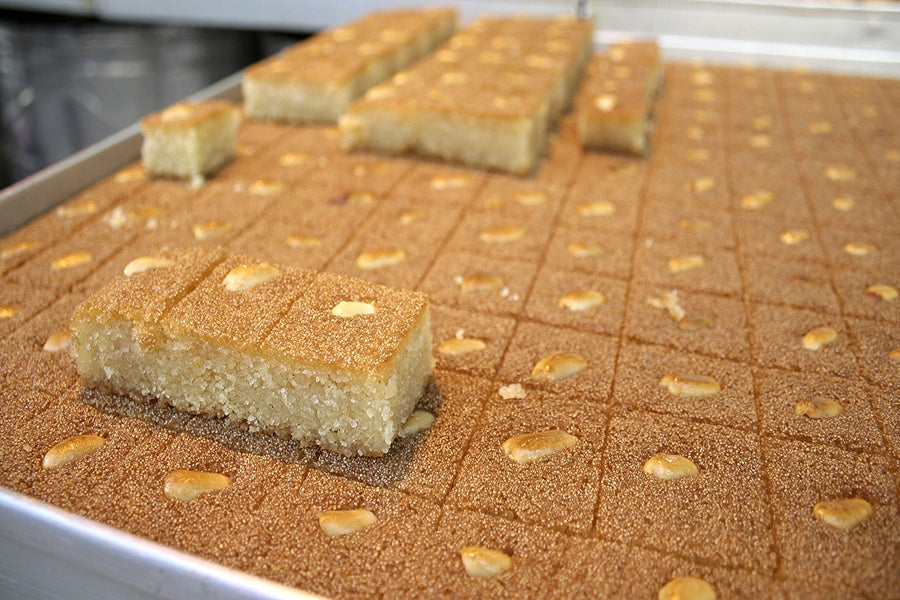 Discover the rich flavors of our authentic Palestinian harissa, made with a traditional farmer's recipe. This delightful treat combines the earthy sweetness of semolina with the creaminess of yogurt and the tropical hint of coconut. Baked to golden perfection, each piece is soaked in a fragrant sugar syrup, enhancing its moist texture and rich flavor. Every bite of this harissa offers a taste of Palestinian heritage, blending simplicity and tradition in a truly unique dessert.